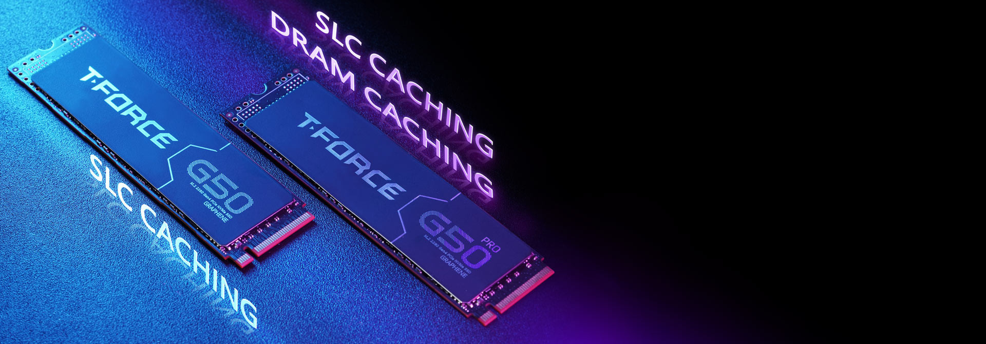 SSD'ler farklı ihtiyaçlara uyacak şekilde farklı derecelendirme sistemleriyle gelir: T-FORCE G50 Pro PCIe4.0 SSD, DRAM Önbelleğe Alma ve SLC Önbelleğe Alma'yı desteklerken, T-FORCE G50 PCIe4.0 SSD yalnızca SLC Önbelleğe Alma'yı destekler. Size en uygun olanı seçin.