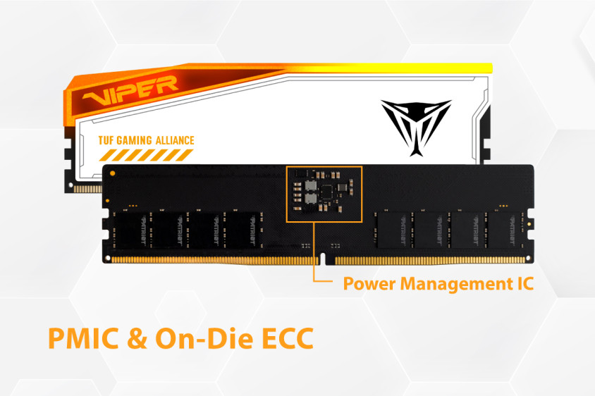 On-Die ECC ile Viper Elite 5 TUF Gaming Alliance DDR5, tek bitlik hataları düzeltebilir ve çok bitli hataları tespit edebilir; donanım hataları veya sistemdeki diğer sorunlar durumunda veri bütünlüğünün, veri doğruluğunun ve sistem güvenilirliğinin korunmasını sağlar. yüksek performanslı ortamlar. Viper Elite 5 TUF Gaming Alliance DDR5 ayrıca daha düşük voltaj ve daha az ısı üretimiyle daha yüksek hızda çalışma için entegre yüksek kaliteli PMIC özelliğine sahiptir.