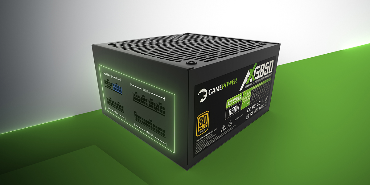100-240V 80 Plus® Gold derecesine sahip Gamepower AXG-850, %90nın üzerinde yüksek verimlilik sunar.