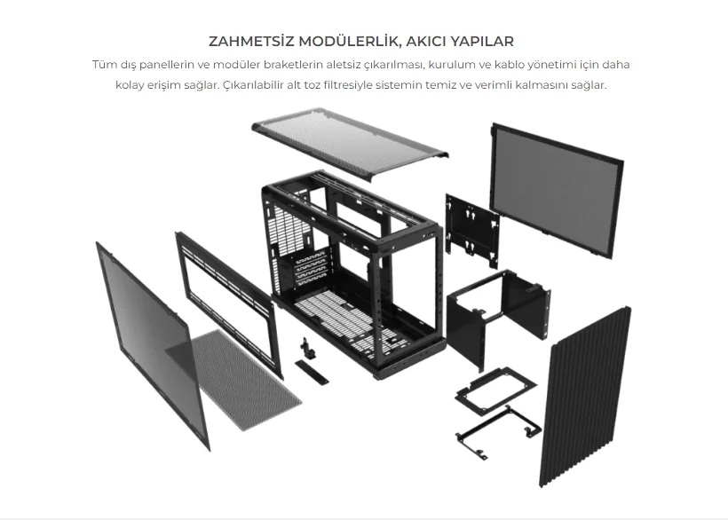 Disk Desteği Tepsi: 2 × 2,5” SSD Alt: 1 × 2,5” SSD veya 1 × 3,5” HDD