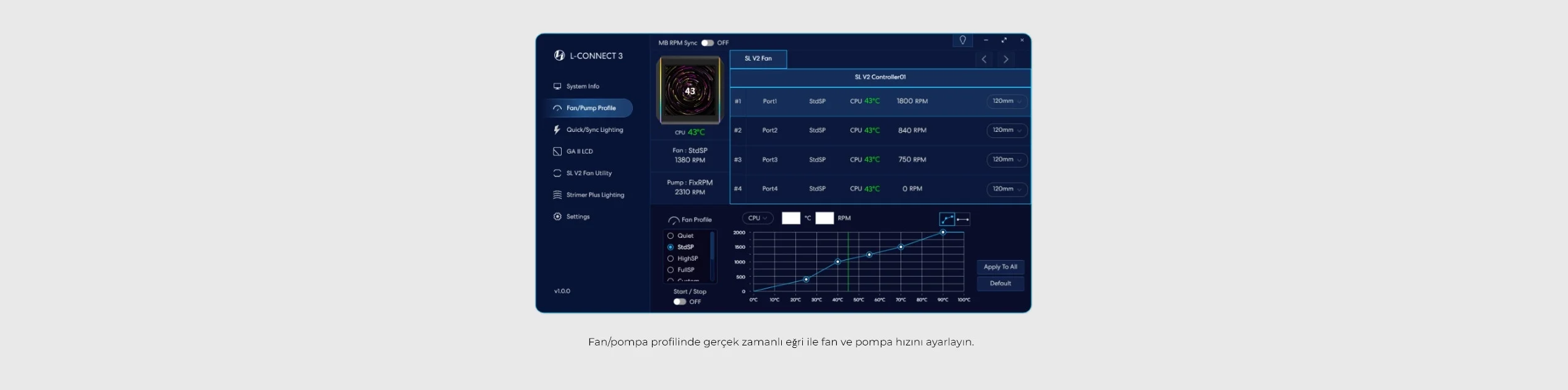 Kontrolör pompaya entegredir ve fan, L-Connect 3 üzerinden kontrol edilmek üzere pompaya bağlanabilir.