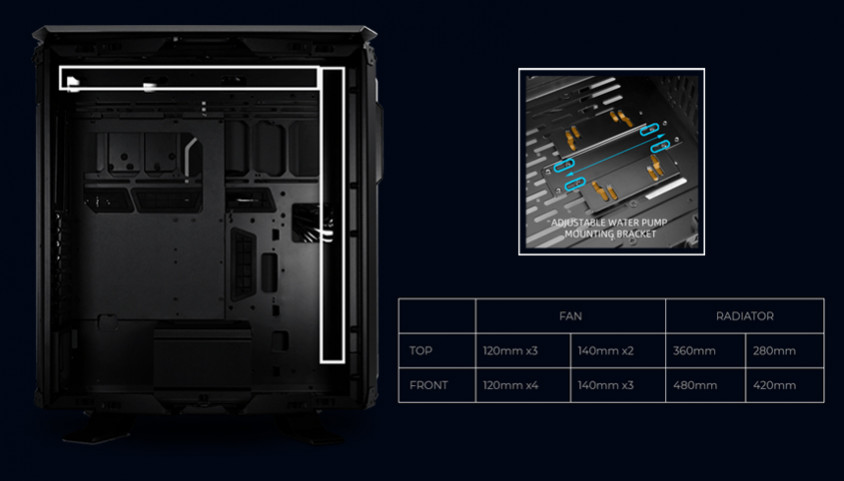 - Yüksek su pompası için ayarlanabilir su pompası montaj braketi dahildir. (Not: Performance modunun su pompası montaj braketi, ön G/Ç montaj braketinden dönüştürülür)