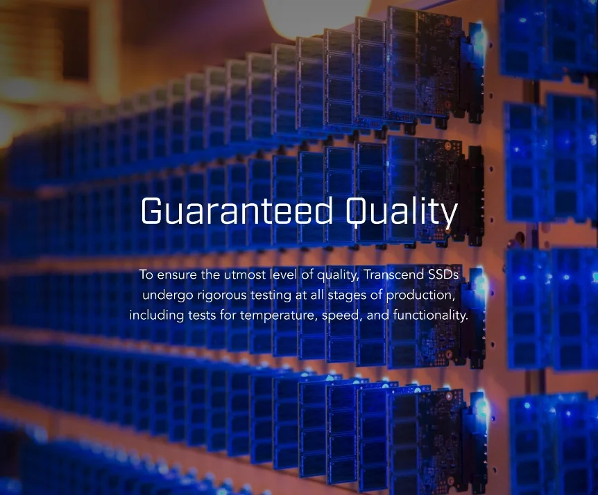 En üst düzeyde kaliteyi sağlamak için Transcend SSD'ler, sıcaklık, hız ve işlevsellik testleri de dahil olmak üzere üretimin her aşamasında titiz testlerden geçirilir.